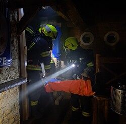 Nachdem im Herbst 2024 die Waschrumpl wieder eröffnet wurde, war eine Personenrettung aus dem Lokal das Thema bei der Übung am 2. April. Gemeinsam mit einem Atemschutztrupp der FF Neukirchen wurden die verrauchten Räumlichkeiten durchsucht und die Personen ins Freie gebracht. Währenddessen haben die restlichen Einsatzkräfte einen Löschangriff von außen durchgeführt und die Wasserversorgung vom Löschwasserbehälter bei der Kirche hergestellt.