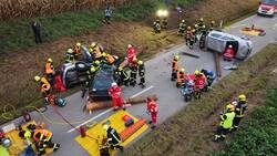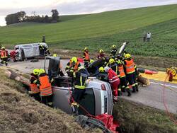 Am Freitag, 10. Oktober wurden wir um 18 Uhr zu einem Verkehrsunfall auf die Landesstraße Richtung Willing alarmiert. Vor Ort stellte sich heraus, dass 3 PKW verunfallt waren. Insgesamt 5 Personen waren in den Unfallfahrzeugen eingeschlossen bzw. eingeklemmt. Während und nach der Personenrettung wurden die Opfer von drei Rettungsmannschaften versorgt. Nach rund einer Stunde waren alle Personen befreit und die Übung konnte erfolgreich abgeschlossen werden.