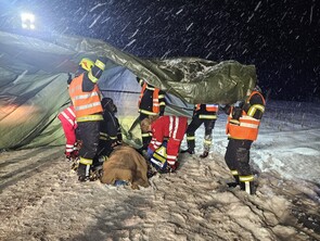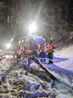 Eine besondere Herausforderung stellte der starke Schneefall dar. Gemeinsam mit den Gemeindearbeitern wurde die Einsatzstelle bestmöglich freigeräumt, zudem unterstützten wir das Rote Kreuz beim Anlegen der Schneeketten an den Einsatzfahrzeugen.