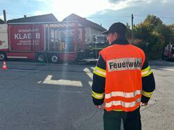 Ein LKW hatte eine Maschine geladen, die umgekippt war. Dadurch flossen größere Mengen Betriebsmittel aus, wodurch eine Ölspur von Willing bis Oberschwaig die Straße verschmutzte. Nach ca. 1 Stunde war der Einsatz für uns wieder beendet.