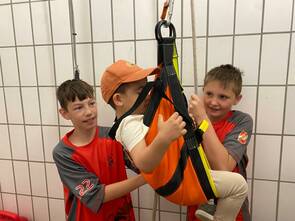 Um 12:30 Uhr folgte der nächste Einsatz: eine bewusstlose Person in einem Silo. Unter schwerem Atemschutz gelang uns eine sichere Rettung. Am Nachmittag spielten wir im Zeughaus und stärkten den Teamgeist.